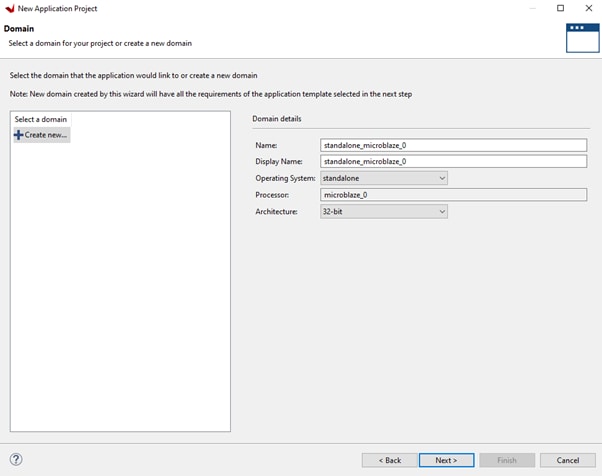 In Vitis, create a new application project, target the just exported XSA, and select the “Hello World”
