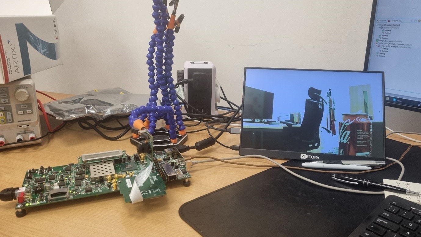 - AMD LogiCORE™ IP Sensor Demosaic core, which converts the raw images from the camera to a RGB pixel