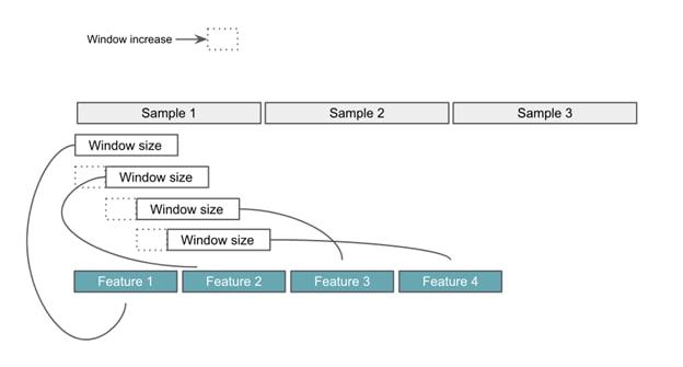 Figure 2: How the settings of the Input Block can impact extracting features from the raw data. (Source: Edge Impulse)