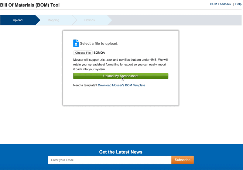 La herramienta BOM de Mouser le permite importar sus datos de dos maneras: