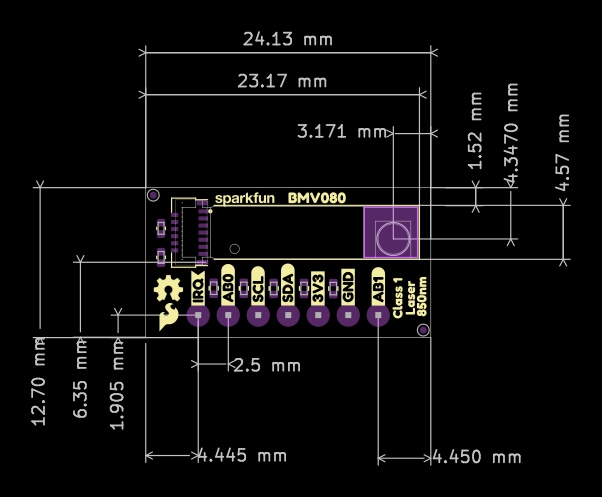 • 4.2mm x 3.1mm x 20mm Bosch BMV080 sensor dimensions